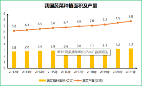 蔬菜是人類獲取營(yíng)養(yǎng)的主要途徑之一,也是人類飲食中不可或缺的食物,其重要性僅次于糧食作物。近幾年蔬菜種植的經(jīng)濟(jì)效益較高,成為農(nóng)業(yè)增收、農(nóng)戶受益、農(nóng)村經(jīng)濟(jì)發(fā)展的重要經(jīng)濟(jì)產(chǎn)業(yè)。據(jù)統(tǒng)計(jì),截止2021年蔬菜種植面積達(dá)3.3億畝,產(chǎn)量達(dá)7.8億噸,種植面積和產(chǎn)量仍有增長(zhǎng)趨勢(shì)。