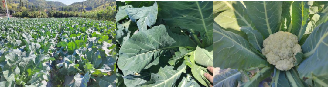 使用競(jìng)雙750倍+25%噻菌銅噴霧防治花椰菜軟腐病,莖基部、葉片、花頭正常生長(zhǎng),未見(jiàn)軟腐病發(fā)生。