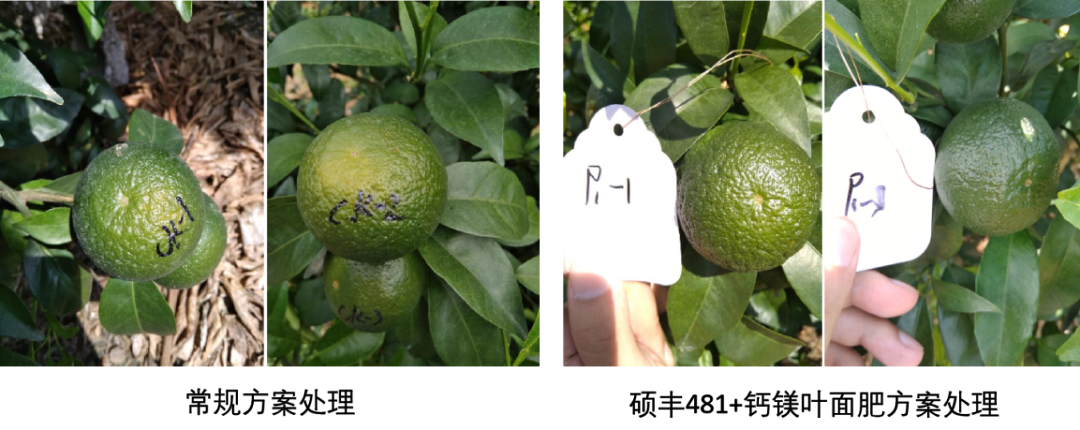在雜柑的幼果膨大期使用天然蕓苔素+鈣鎂葉面肥能夠促進樹體補充鈣元素,果面光靚,減少裂果產(chǎn)生,預(yù)防日灼果。小編推薦:雜柑幼果膨大期,使用天然蕓苔素碩豐481?2000倍+多迎鈣鎂1000倍噴霧。與常規(guī)方案處理相比,此方案處理,果實直徑大、果面光亮,日灼果發(fā)生概率降低30%。