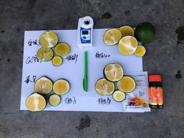 除了溫度、光照會影響果實糖分積累以外,營養(yǎng)的補充和調(diào)節(jié)劑的使用也決定著果實糖度和著色程度。尤其針對四川晚熟雜柑到后期氣溫慢慢的降低,普通蕓苔素吸收率利用率會大打折扣,而天然蕓苔素能提高作物的光合作用效率,在低溫下吸收利用率高,能夠低溫條件下促進養(yǎng)分、色素和糖分的合成與積累。